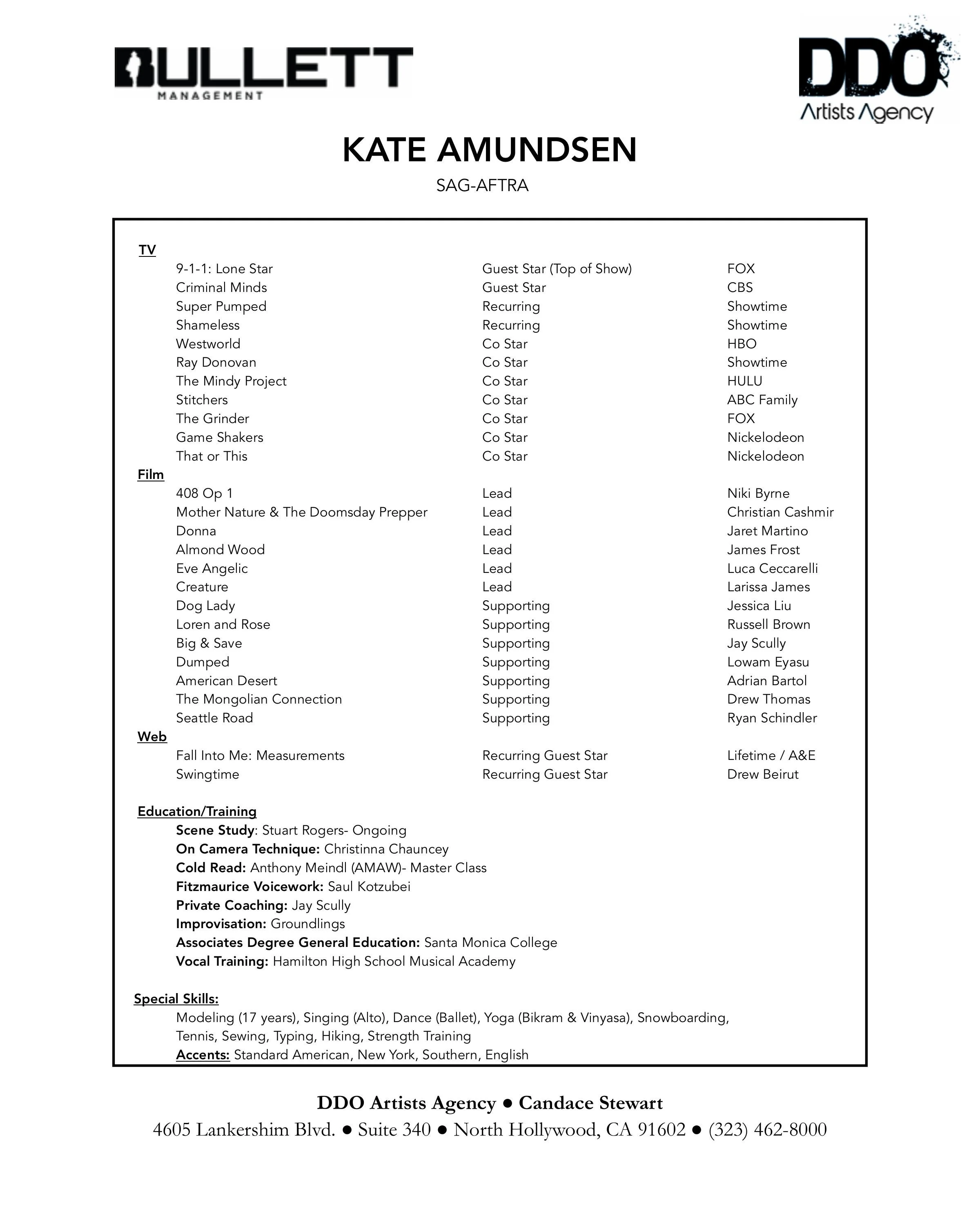 "I have worked with Kate Amundsen for years in one of my Mastery Classes at our LA studio. She is the epitome of professionalism, grace, commitment, passion and talent. There is nothing she can't do. Which can be difficult for people to get their heads around sometimes. So suffice to say, in a social-media-driven age of everyone trying to be like someone else... Kate is uniquely and beautifully herself."-Anthony Meindl (Master Class AMAW)